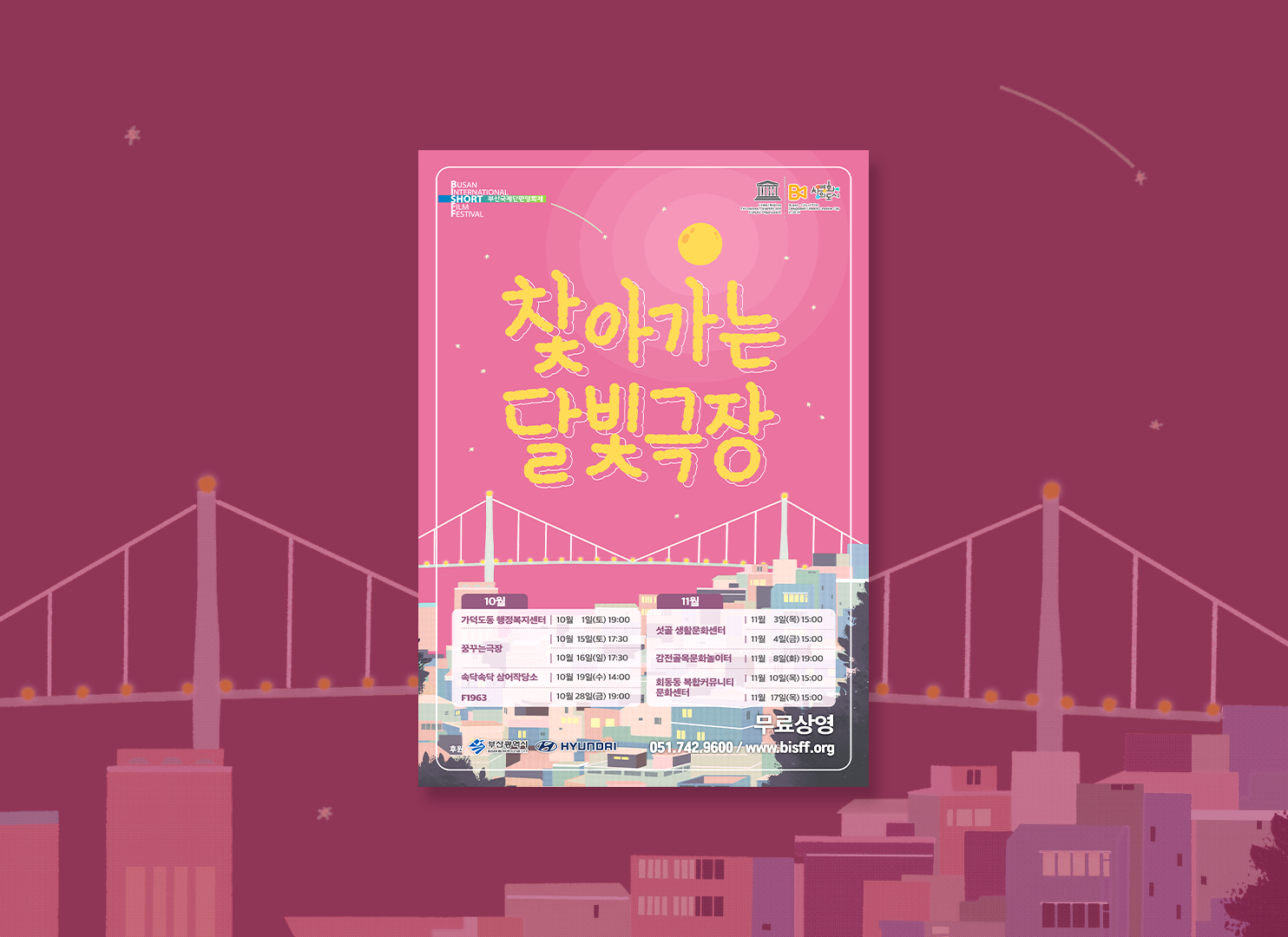 부산국제단편영화제 찾아가는달빛극장 홍보물